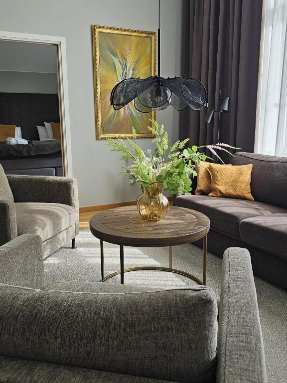 Les chambres modernes de l'Hotel Skansen disposent d'une connexion Wi-Fi gratuite et d'une télévision par satellite à écran plat. Certains hébergements comprennent également un coin salon et un bureau.