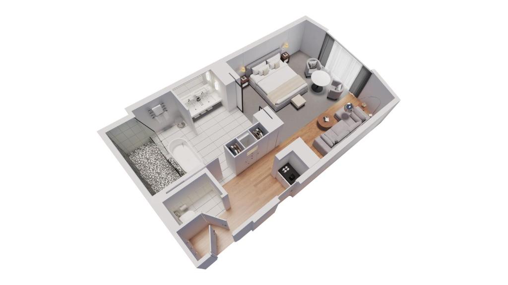Les suites sont dotées d'une télévision à écran plat et d'une salle de bains spacieuse ornée de mosaïques Putman. Les suites disposent d'une grande douche à l'italienne et d'une baignoire îlot.
