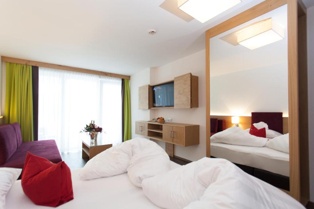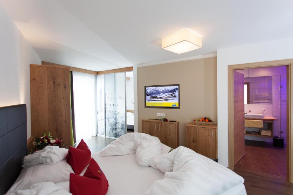 L'Hotel Sonnleiten bénéficie d'un emplacement bien exposé à flanc de colline à Ladis, dans le Tyrol, juste à côté des remontées mécaniques. Il propose des chambres avec un balcon donnant sur la montagne et un élégant spa.