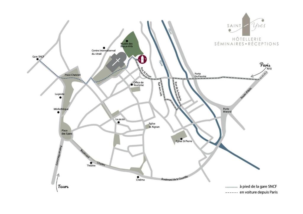 L'Hôtellerie Saint Yves est située à Chartres, à 50 mètres de la célèbre cathédrale. Ce bâtiment du XVIIe siècle était auparavant un monastère. Il propose des chambres pourvues d'une salle de bains privative et une connexion Wi-Fi gratuite.
