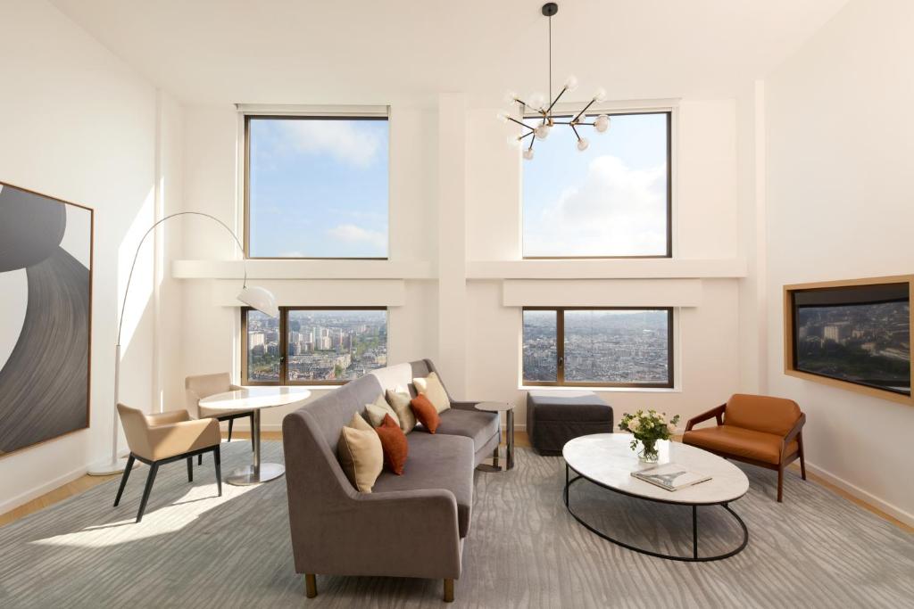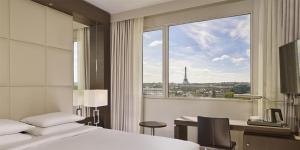 Les chambres comprennent un bureau, une télévision par câble, la climatisation et un coffre-fort. Chaque logement offre une vue sur Paris. Leur salle de bains privative est pourvue d’articles de toilette deluxe.