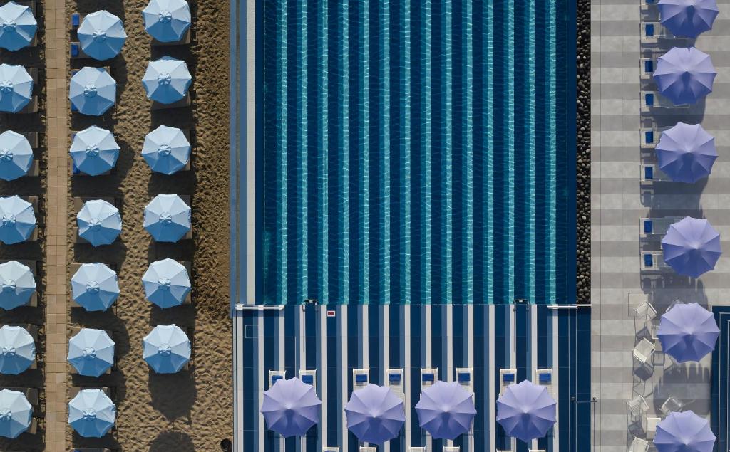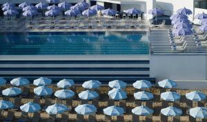 Les 2 piscines sont bordées de terrasses en bois pourvues de chaises longues et de parasols.