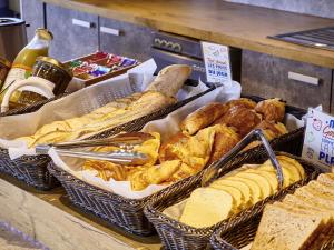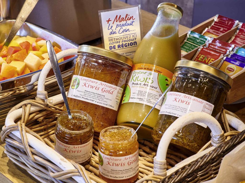 L'ibis budget Saint Paul Les Dax sert un petit-déjeuner continental composé de thé, de café, de croissants, de jus de fruits, de céréales, de pain, de confitures, de fromage, de miel, de yaourts, de compote et de salade de fruits.