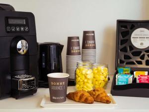 Un petit-déjeuner buffet composé de plats sucrés et salés incluant des œufs, de la salade de fruits, des yaourts et des jus est servi tous les matins. Des viennoiseries cuites sur place et des madeleines fraîches sont aussi proposées ainsi qu'une boisson chaude et un fruit à emporter. Un petit-déjeuner plus léger est proposé à partir de 4h00. La réception de l'établissement est ouverte 24h/24 et une bagagerie ainsi que des salles de réunion sont également à votre disposition.