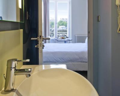 All of the 45 rooms are soundproofed and air-conditioned, equipped with en suite facilities and include central heating and flat-screen TV. Free Wi-Fi access and breakfast are included.