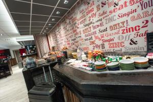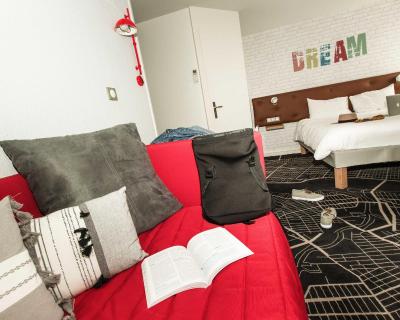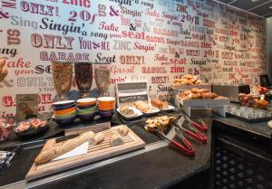 Tous les matins, vous pourrez déguster un petit-déjeuner dans la salle à manger colorée de l'établissement. Un bar est également accessible sur place.