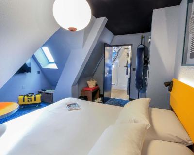 L'ibis Styles Saint-Malo Centre Historique est situé au cœur des remparts historiques de Saint-Malo, à seulement 30 mètres de la plage du Sillon et 75 mètres du port de plaisance. Il possède un bar avec une terrasse offrant une vue panoramique sur les remparts de la ville.