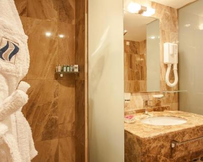 Picturesque views of the sea or the park are offered from the elegant 5-star rooms and suites. Each unit comes with an individually controlled air-conditioning and cable TV including international programmes. The en-suite bathrooms are provided with a make-up mirror and a hairdryer.