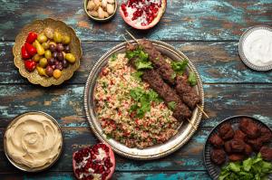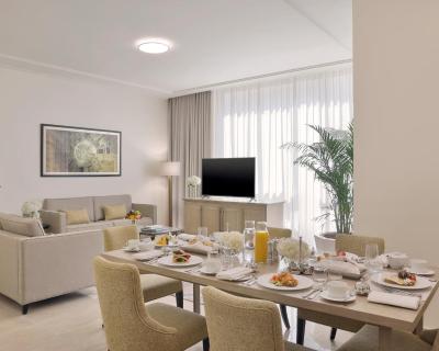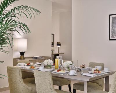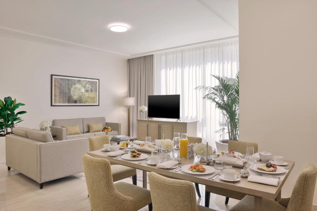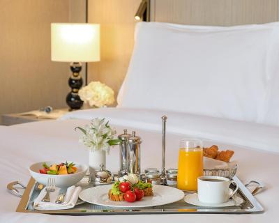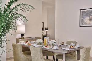 Un petit-déjeuner buffet, américain et végétarien est servi tous les jours. Le restaurant sur place sert une cuisine méditerranéenne, du Moyen-Orient et marocaine. Des plats végétariens, végétaliens et sans gluten peuvent également être préparés sur demande.