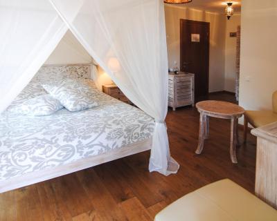 L'hôtel est pourvu d'un intérieur design, avec des meubles d'époque. Il dispose d'un salon, d'une petite bibliothèque et d'une grande terrasse avec cheminée.