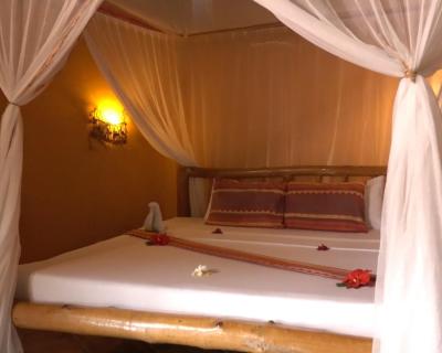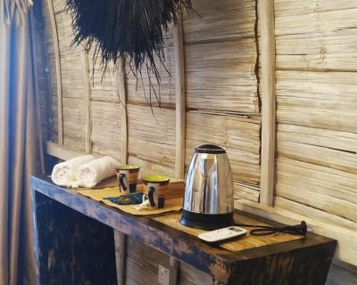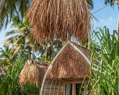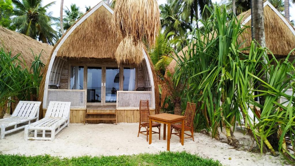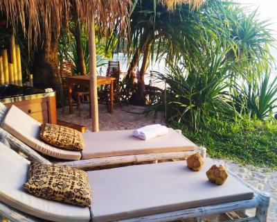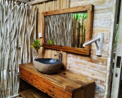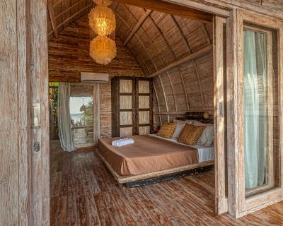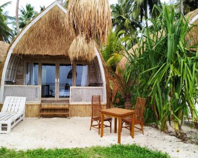 Décorés de manière personnalisée, les bungalows disposent d'un coin salon, d'une moustiquaire et d'un ventilateur. Chaque logement comprend une terrasse ou un patio avec vue sur la mer ainsi qu'une salle de bains privative avec douche extérieure.