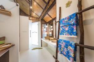 Climatisés, tous les bungalows sont décorés d'illustrations faites à la main et de meubles artisanaux locaux. Aménagés de manière semi-ouverte, les spacieux bungalows comprennent une douche à effet pluie extérieure, ainsi qu'une terrasse privative pourvue de chaises longues et d'un parasol. Vous profiterez d'une vue enchanteresse sur l'océan ou la forêt tropicale.