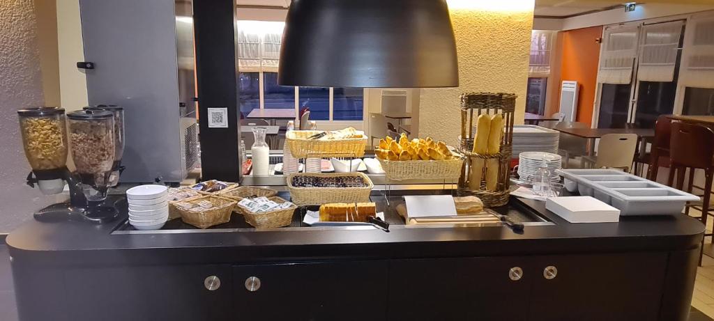 A buffet breakfast with hot drinks, fruit juice and pastries is served every morning at Hotel Nancy Vandoeuvre.