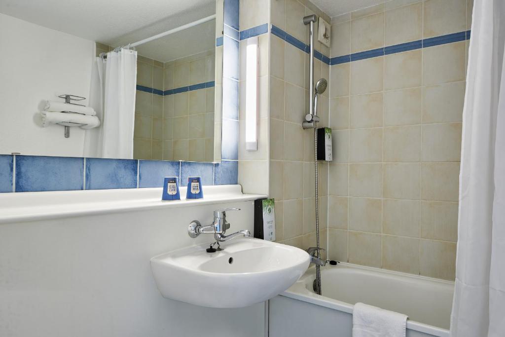 Chaque chambre du Kyriad Tarbes Bastillac dispose également d'une salle de bains privative et d'un plateau/bouilloire.