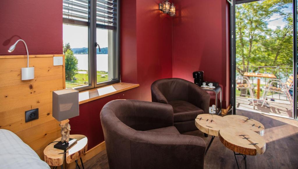 Tous les logements sont munis d'un coin salon. Le Relais du Silence L'Atelier de Donat propose quelques chambres offrant une vue sur le lac. Toutes sont dotées d'une machine à café et d'une télévision par câble à écran plat.