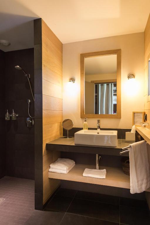 Les chambres de La Grée Des Landes - Eco-Hôtel-Spa Yves Rocher sont dotées d'une terrasse privée et offrent des vues sur la campagne. Elles sont lambrissées de chêne et comprennent des sols faits du même bois, tiré de forêts à la gestion durable. Toutes les chambres sont équipées d'une télévision, d'une salle de bains privative et d'une literie réalisée à partir de produits bio.