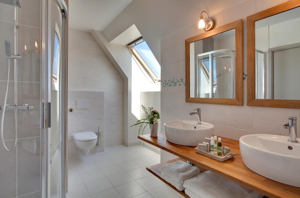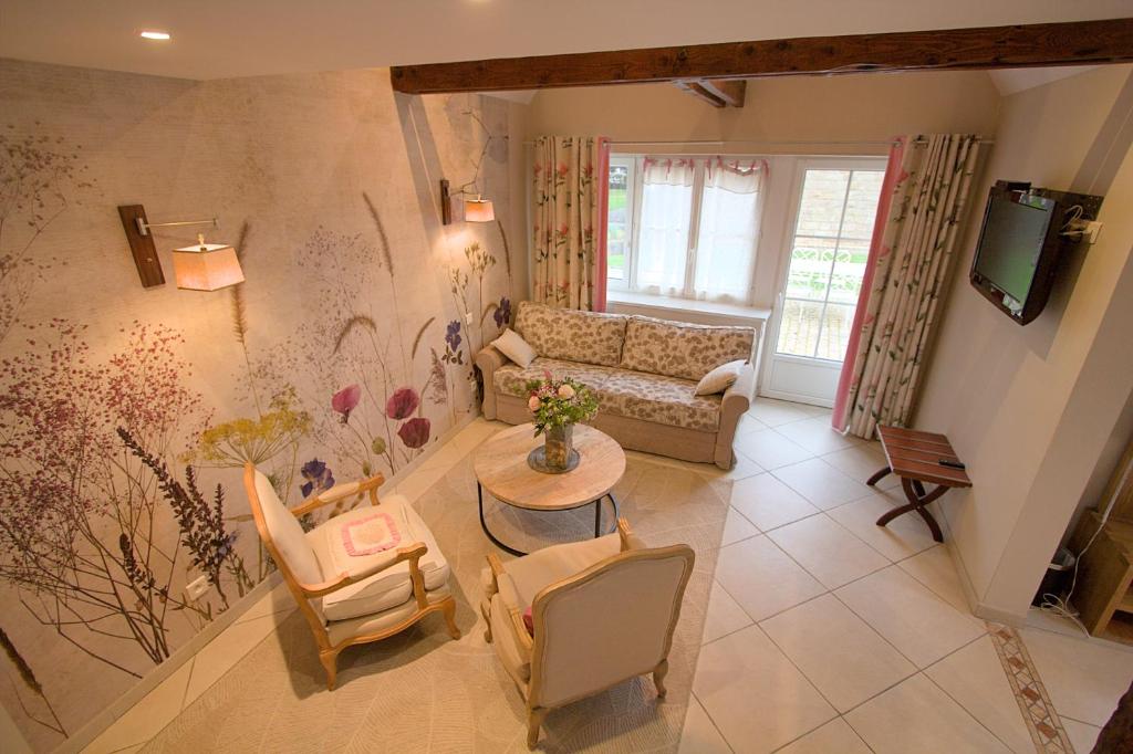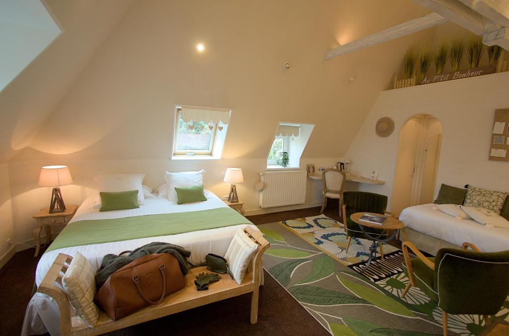Le petit-déjeuner est servi dans la salle à manger, surmontée d'une verrière et donnant sur le jardin fleuri. Le P'tit Bonheur, doté d'un salon de thé et d'un bar à vins, propose une sélection de boissons.