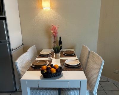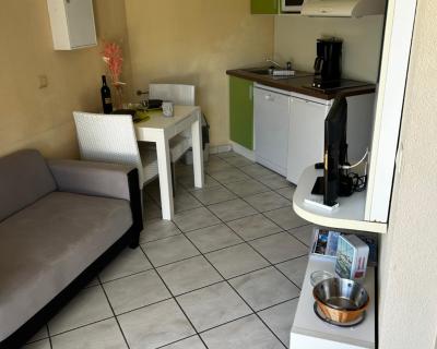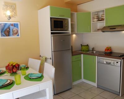 Les villas élégantes de l'établissement Les Jardins de Neptune sont climatisées et disposent d'une kitchenette équipée d'un réfrigérateur-congélateur, d'un four micro-ondes, de plaques vitrocéramiques, d'une cafetière, d'une bouilloire électrique et d'un lave-vaisselle.