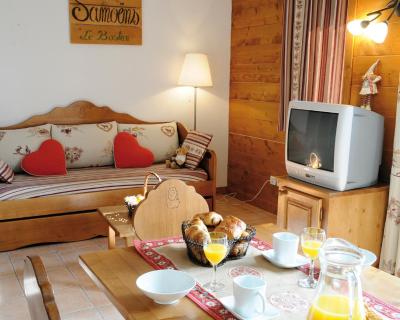Cette nouvelle résidence se compose de 120 appartements répartis dans de petits immeubles de 2 étages et des chalets mitoyens construits dans le style architectural local. Vous trouverez également une piscine intérieure chauffée et un sauna sur place. Les serviettes et le linge de lit sont fournis dans les logements.