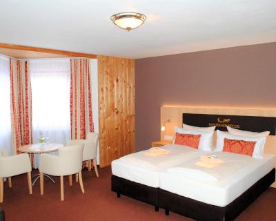 Surrounded by chestnut trees, the beer garden at the Goldener Pflug opens in summer. it features a covered barbecue hut and a grill.