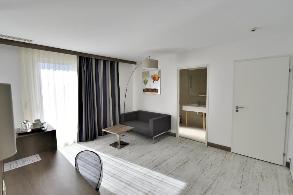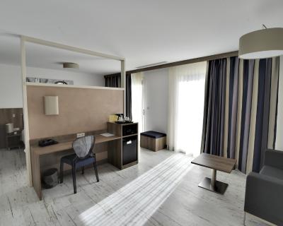 Cette suite comprend un salon, une chambre séparée ainsi qu’une salle de bains avec une douche à l'italienne et des articles de toilette gratuits. Offrant une vue sur la piscine, la suite climatisée dispose d’un coin salon, d'une télévision à écran plat, d'un minibar et d'un plateau/bouilloire. Le logement comporte 2 lits.