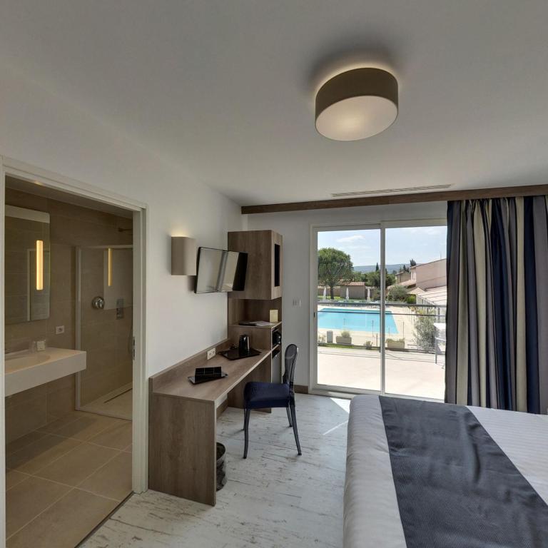 L'établissement propose un service d'étage, une bagagerie, des journaux quotidiens et des chambres adaptées aux personnes à mobilité réduite. Il vous place à 25 km du château de Grignan et à 21 km de l'abbaye Notre-Dame d'Aiguebelle.