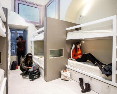 Ses chambres à la décoration contemporaine sont ornées de fresques d’origine. Les salles de bains peuvent être privatives ou communes.