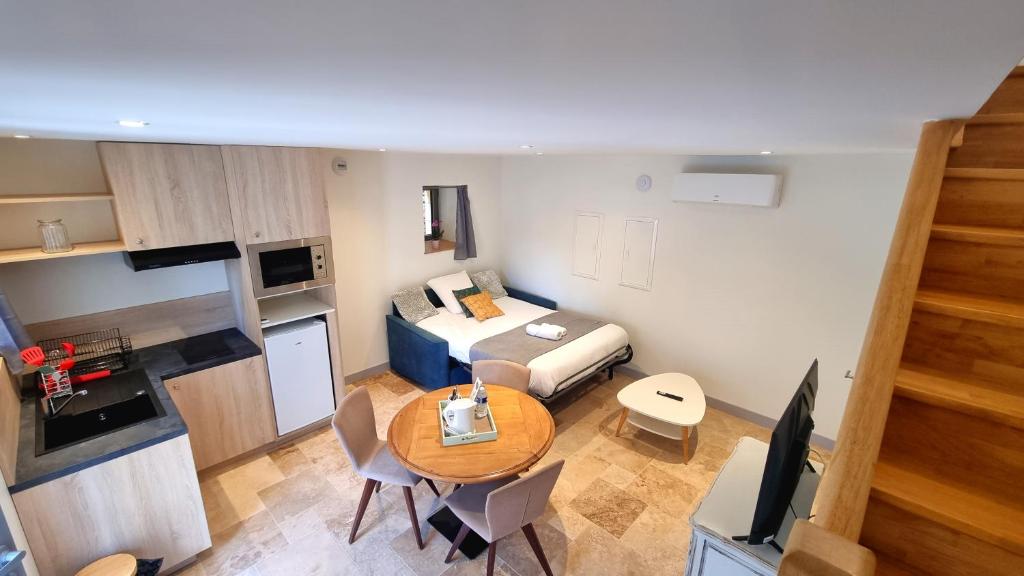 Doté d’une entrée privée, cet appartement climatisé comprend un salon, 1 chambre séparée ainsi qu’une salle de bains avec une douche à l’italienne et un sèche-cheveux. La kitchenette bien équipée est munie de plaques de cuisson, d’un réfrigérateur, d’un micro-ondes et d’ustensiles de cuisine. Cet appartement insonorisé dispose d'un plateau/bouilloire, d'une télévision à écran plat et d’une terrasse. Ce logement comporte 2 lits.