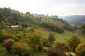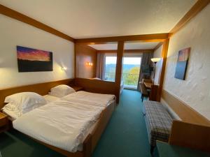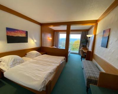 Cette chambre avec salle de bains privative dispose d'un balcon offrant une vue sur le château et la vallée.