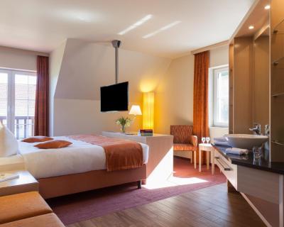 Le Logis Hôtel Kur- und Wellnesshaus Spree Balance propose des chambres et des suites spacieuses et meublées avec goût au cœur de la romantique réserve Spreewald de Brandebourg.
