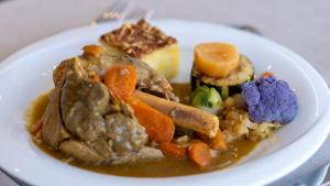 L'hôtel propose un restaurant traditionnel classé 3 Cocottes Logis de France, offrant une vue panoramique sur Saint-Omer.