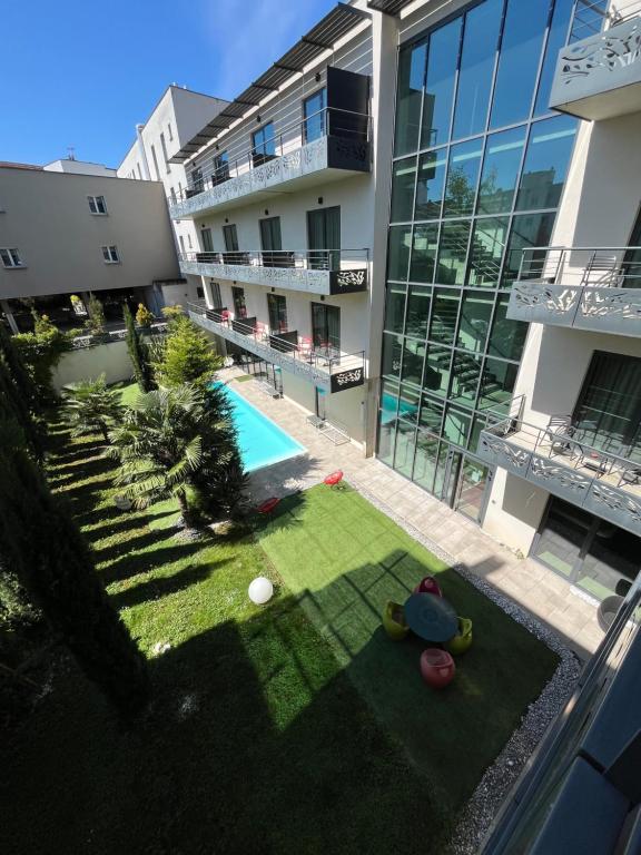 Le Logis Hôtel Victor Hugo & Spa propose un hébergement à 50 mètres de la gare de Besançon-Viotte et à seulement 15 minutes à pied du centre-ville historique de Besançon. De nombreux logements donnent sur un jardin intérieur.