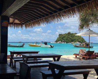 Le bar-restaurant face à la plage sert un petit-déjeuner à la carte, des boissons ainsi que des plats occidentaux et thaïlandais.