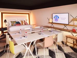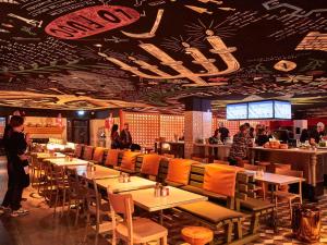 Le Mama Shelter Toulouse est doté d'un cinéma de 45 places et d'un grand toit-terrasse où vous pourrez déguster un verre de vin local et des pizzas cuites au four en brique. Le restaurant sur place comporte un barbecue et un grill argentin. Il sert également une cuisine locale et faite maison.