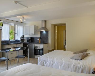 Cette chambre double comprend une salle de bains privative pourvue d’une baignoire ou d’une douche et d’un sèche-cheveux. Des articles de toilette sont fournis gratuitement. La cuisine est bien équipée avec des plaques de cuisson, un four, un réfrigérateur et des ustensiles. Cette chambre double est dotée d'un plateau/bouilloire, d'une armoire, du chauffage et d'une télévision par satellite à écran plat. Ce logement comporte 1 lit.