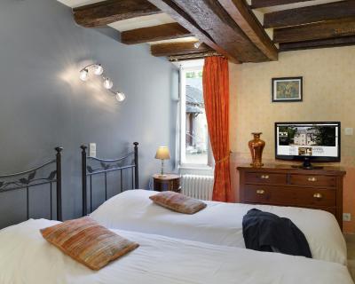 Cette chambre décorée avec un mobilier d'époque dispose d’une connexion Wi-Fi gratuite et d’une télévision à écran plat avec les chaînes Canal+.