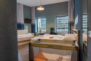 Toutes les chambres du MEININGER Hotel Amsterdam City West disposent d'une décoration lumineuse avec des touches vives et de parquet. Leur salle de bains privative possède une douche.