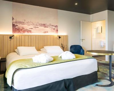 Le Mercure Bords de Loire Saumur est situé au bord de la Loire, dans la ville de Saumur. Son bar offre une vue panoramique sur le lac et la ville.