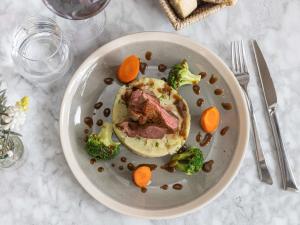 Le restaurant Le Vieil Abreuvoir sert une cuisine traditionnelle de style brasserie. En soirée, vous pourrez déguster une boisson au coin du feu dans le bar de l'hôtel.