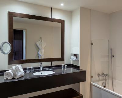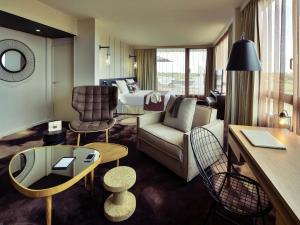 Les chambres et les suites présentent une décoration de style contemporain et offrent une vue sur Lyon ou Genas. Elles comportent une grande télévision à écran plat et une salle de bains privative. Les suites bénéficient également d’un balcon privé.