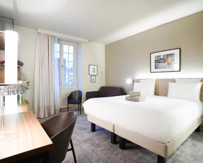 Les chambres disposent d'une télévision par satellite, d'un système Chromecast, d'une connexion Wi-Fi, d'un coffre-fort et d'une salle de bains privative avec articles de toilette Nuxe. Certaines chambres sont accessibles aux personnes à mobilité réduite.