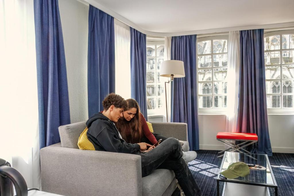 Le Mercure Rouen Centre Cathédrale propose des chambres climatisées dotées d'une télévision par satellite, d'une connexion Wi-Fi gratuite et d'une salle de bains privative dans le centre de Rouen, à 160 mètres de la cathédrale Notre-Dame et à 3 km du palais des sports de Rouen.