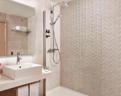 Each room features a private bathroom, complete with a hairdryer.