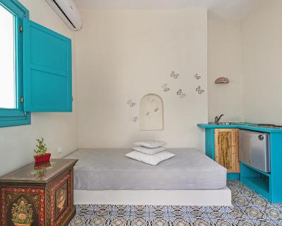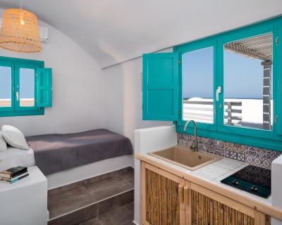 The self-catered Nissia Apartments in Santorini offer a swimming pool, a jetted tub and a variety of accommodation types, all with fridge, kitchenette and air conditioning.
