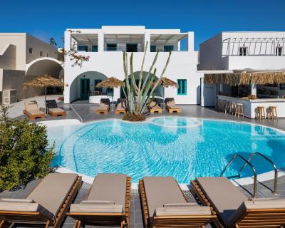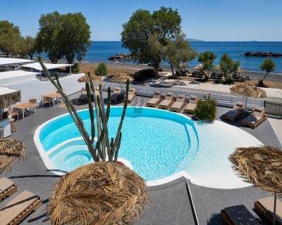 The seaside complex of Nissia Apartments is located right on the front of Kamari’s unique black sand beach. It offers great views over Santorini’s magnificent sunrise and the Aegean Sea.