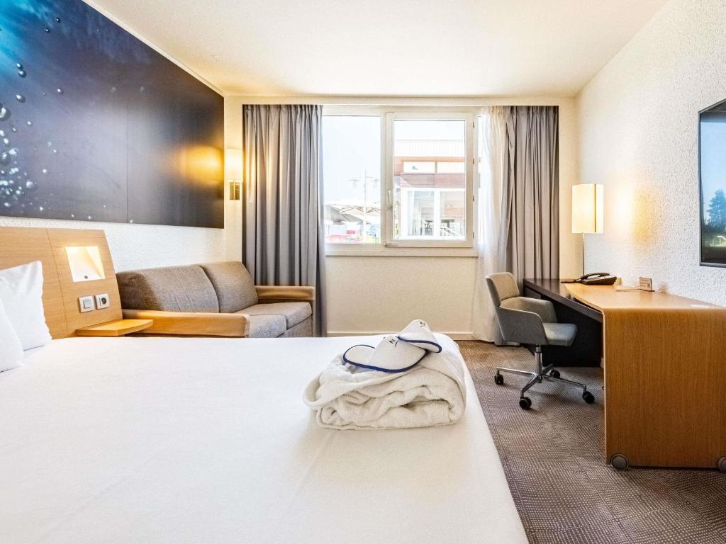 Spacieuses et climatisées, les chambres du Novotel Dijon Sud incluent une télévision par satellite et un minibar.
