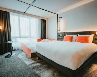Climatisées et spacieuses, les 81 chambres du Novotel Lens Noyelles proposent un vaste espace de vie fonctionnel.