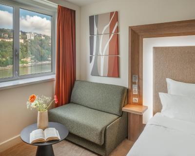 Implanté dans le centre de Lyon, sur les rives de la Saône, le Novotel Lyon Centre-Confluence Bord de Saone propose une terrasse et un bar avec vue panoramique sur la rivière. Une station de vaporetto, située juste devant l'hôtel, vous permettra de rejoindre la vieille ville de Lyon en navette fluviale, moyennant un supplément. L'établissement se trouve à 950 mètres du Musée des Confluences.