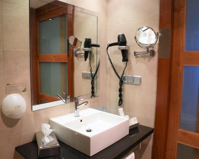 Modernes et élégantes, les chambres sont revêtues de parquet. Chaque logement climatisé comprend une télévision à écran LCD, un coffre-fort et une salle de bains pourvue d’un sèche-cheveux. L’établissement possède également 7 salles de réunion et de conventions.