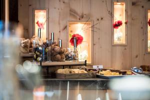 Le restaurant sert une cuisine d'Italie et du Tyrol du Sud. Le petit-déjeuner est disponible sur demande, sous la forme d'un buffet ou d'un panier livré à votre chalet.
